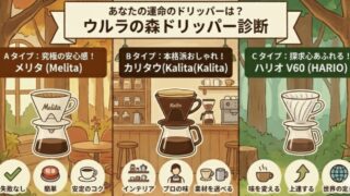 コーヒー コーヒー初心者にぴったりの相棒はどれ?「ドリッパー診断テスト」 グリーンこんにちは!ウルラの森の新人、グリーンです。コーヒーの世界へようこそ! 「ドリッパーの種類が多すぎて、どれを選べ... 2026.01.13 コーヒー