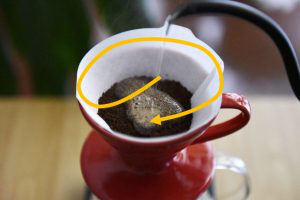 - 紙には直接かけない: これが一番大事! 紙にお湯をかけると、豆を通らずにそのまま下に落ちてしまうから。